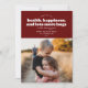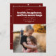 Este cartão de férias moderno contém as palavras "desejando-lhe saúde, felicidade e muito mais abraços no próximo ano", escrito em branco sobre um fundo burgundy. Tem espaço para uma fotografia de solteiro e seria perfeito como um cartão de férias ou um cartão de ano novo.
