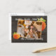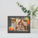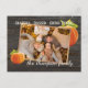 Cartão de Natal único, clássico, de moda, bonito e decorativo. Engraçada e Bonita Abençoação Dando aos Obrigados texto e espaço para personalizar ou personalizar com uma foto e nomes (ou nome da família) de sua escolha. Com abóboras de laranja clássicas bonitinhas em uma caserna rusticária de cinza de fundo com aparência meteorológica, a fazenda inspirou planadores de madeira de casca-de-rosa. E um poema de saudação de estação personalizável na parte de trás do cartão.