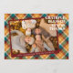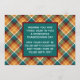 Cartão de Natal único, clássico, de moda, bonito e decorativo. Cartão de Natal único, clássico, de moda, bonito e decorativo. GRATUITO FANTASIA DANDO aos OBRIGADOS texto e espaço para personalizar ou personalizar com uma foto e nomes (ou nome da família) de sua escolha. Com flores amarelas quentes e bonitas Mães de queda amarelas em um verde azul-lacrimogêneo, laranja-abóbora e vinho burgundy vermelho cor rústica da fazenda inspirou design de padrão de tartan xadrez. E um poema de saudação de estação personalizável na parte de trás do cartão.