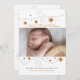 Um cartão com fotos de férias com estrelas, com fundo branco, estrelas douradas e pintas pontilhadas.<a href="https://www.freepik.com/free-photos-vectors/background">Vetor de fundo criado por linha estelar - www.freepik.com</a>).<a href="https://www.freepik.com/free-photos-vectors/baby">Foto do bebê criada por freepik - www.freepik.com</a>). <br/>() A placa é fácil de personalizar com o seu texto, fonte, cor da fonte, opções de forma de papel e escolha de seis tipos de papel.<br/>() Não exatamente o que você está procurando? Todos os nossos produtos podem ser personalizados para atender às suas necessidades sem custos adicionais.<br/>() Basta entrar em contato conosco em askcottonlamb@gmail.com.<br/>() Coordenando os produtos disponíveis: Apenas nos pergunte!"