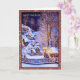 Cena de neve de inverno com casas com janelas iluminadas cobertas de neve fresca um poste de luz e árvores. Espero que goste de ver meus Cartões de natal, assim como meus outros produtos na minha loja. Tudo pode ser personalizado com nomes, suas próprias palavras, citações favoritas, etc... Imagens, palavras e cores de fundo podem ser alteradas/ redimensionadas e reorganizadas. Feliz Feriados e obrigado-te por teres parado na minha loja.