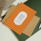 Torne mais claros os feriados com um cartão de Natal de xadrez de búfalo laranja ousado, com tipografia atraente para uma saudação divertida e festiva.