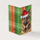 Um pacote único e divertido de 25 cartões de feriado - todos idênticos - com um cão GSD numa xadrez vermelha e verde de feriado. O tamanho de 4" x 3,5" (2" x 3,5") faz dele um cartão de boas-vindas que se destacará entre todos os outros na época de Natal.