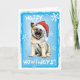 Envie Cartões de natal com esta carta de um filhote de Elkhound norueguês vestindo um chapéu de Papai Noel em meio a flocos de neve e as palavras, Feliz Feliz Howlidays! Excelente para a família e amigos que amam elkhound. Feliz Howlidays!