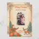 Envie desejos de feriado quente com este cartão de natais vintages! Apresentando Papai Noel, renas e pinheiros desenhados à mão em papel creme envelhecido, com textura de neve, bordas decorativas antigas e quadro fotográfico personalizado. Perfeito para cartões de natal nostálgicos, decoração sazonal e comemorações festivas. Texto personalizável na parte frontal e traseira do cartão para que você possa adicionar seu toque exclusivo a este belo cartão de feriado. Compartilhe o charme de Natal eterno com a família e os amigos!
