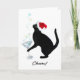 Um gato Papai noel preto segura um cocktail espumante neste cartão de comemoração divertido.