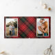 Este belo design triplo apresenta um fundo tartano vermelho e quatro grandes fotos verticais por todo o lado (um cobrir, um flap externo e dois dentro. À medida que você abre completamente o cartão, você vê duas fotos verticais e no meio está seu texto principal. A parte traseira da placa é vazio, mas você poderia facilmente adicionar outra foto ou mais texto. Esta design é uma escolha perfeita para uma mensagem calorosa e sincera de alegria de Férias. O layout multifoto permite que você faça o upload de um total de quatro fotos da sua família favorita.