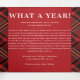 Este belo design triplo apresenta um fundo de tartã vermelho e quatro grandes fotos quadradas ao longo (um cobrir, um flape externo e dois dentro). À medida que você abre completamente o cartão, você vê duas fotos quadradas e no meio está seu texto principal. A parte traseira da placa é vazio, mas você poderia facilmente adicionar outra foto ou mais texto. Esta design é uma escolha perfeita para uma mensagem calorosa e sincera de alegria de Férias. O layout multifoto permite que você faça o upload de um total de quatro fotos da sua família favorita.