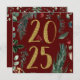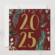Envie os melhores votos para a sua família e amigos enquanto se despede do velho e cumprimenta o Ano Novo com este elegante cartão de boas-vindas de Ano Novo 2025. Este elegante cartão de saudação de 2025 com um envelope incluído apresenta um clássico fundo vermelho-burgundy com verde rústico e amoras vermelhas bonito. Um cardeal vermelho fica no ouro número dois. Personalize a parte traseira desta placa de cartões de natal com uma nota pessoal própria e sua assinatura para um toque personalizado e exclusivo.