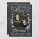 Um quadro de discussão tem um plano de fundo com belos pergaminhos e estrelas de texto azul e branco que diz "Feliz Natal" na frente e "Que todos os seus dias sejam felizes e brilhantes" na parte de trás. Este belo Cartões de foto de Natal de feriado personalizado tem vários ornamentos de estrelas, e um pássaro em um design de ninho e áreas que você pode adicionar facilmente seus nomes, o ano atual e a foto!