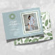 Celebrar a época de férias com estes sotaques elegantes, azuis e de água-coloridos. Este design apresenta um monograma personalizado em uma faixa verde de cor d'água com a opção de adicionar sua própria mensagem pessoal e foto.