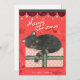 Cartão de Natal bonito com retrorreflector com ilustração de um gato preto dormindo num presente de Natal e texto "Natal Feliz". Perfeito para amantes de gatos. Personalize este cartão com o seu nome. Arte original de Marketa Stengl.