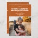 Este cartão de férias moderno contém as palavras "desejando-lhe saúde, felicidade e muito mais abraços no próximo ano" escrito em branco sobre um fundo cor de ferrugem. Tem espaço para uma fotografia de solteiro e seria perfeito como um cartão de férias ou um cartão de ano novo.