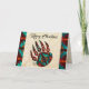 Personalize este Cartão de Natal Único "Um Tipo" de Urso Tribal do Sudoeste! Ele apresenta uma pata de urso tribal sudoeste... em um fundo de arenito... cercado por Turquesa, Bordas Negras e Laranja! Este é um Design de Arte Gráfica Original criado pelo Artista Kerry Miler.