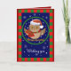 Esta carta desenhada à volta tem na frente uma coruja fofa com um chapéu de Papai Noel pronto para voar na noite de neve. Esta placa pode ser personalizada alterando as cores de fundo (também dentro na placa) e / ou o texto na frente e / ou dentro na placa.