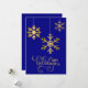 Cartão de Férias Azul e Dourado Flocos de Neve Ele