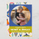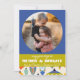 Os ornamentos da árvore retrorativa tornam este cartões de natal colorido e nostálgico. Uma foto na frente em um círculo para realçar sua família.