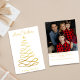 Envie suas saudações para ambos os feriados com este elegante cartão de Natal e Ano Novo duplo em uma foto. A frente apresenta um atemporal design de árvore de Natal dourada com uma simples mensagem "Feliz Natal & Feliz Ano Novo". O verso é totalmente personalizável, com um espaço para uma foto de família querida, o nome da sua família, uma mensagem pessoal e nomes individuais. Este cartão de Natal moderno e sofisticado é a maneira perfeita de compartilhar sua alegria com amigos e familiares.