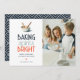 Espalhe Alegria Natalina com nosso cartão de Natal Baking Spirits Bright! Com tipografia lúdica e sofisticada e ilustrações encantadoras de uma tigela de mistura e colheres de madeira, este design captura perfeitamente a alegria de assar durante a temporada de festas. Adicione um toque pessoal com a foto da sua família e uma saudação sazonal sincera. Faça com que seus entes queridos se sintam quentinhos e felizes com este cartão encantador.