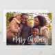 cartão de foto de Natal com script branco simples e moderno, personalize a imagem e o texto das férias.