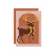 Nesta temporada de festas, envie um toque de elegância com um cartão de Natal impressionante. Com um cervo requintado com chifres amarelos dourados e arco contra um fundo de terracota e rosa desbotado, este cartão exala sofisticação e charme festivo. Personalize a frente com seus cumprimentos de fim de ano, o nome da sua família e o ano, enquanto adiciona uma mensagem especial e assinatura no verso. © Kimbellished, LLC