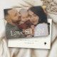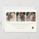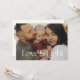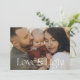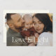 Cartão de festas da família elegante com sua foto em uma com design de tipografia moderna lendo Amor e Luz. Espaço para mensagens pessoais na frente e no verso ao lado de uma estrela brilhante, assim como mais 3 fotos no verso.