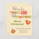 Bonita e alegre! Este cartão chic de Natal plano, estilo de convite gráfico, apresenta texto retrógrado estilizado em várias cores que diz Desejar a Paz, o Amor e a Felicidade. As cores incluem verde, vermelho e rosa. Com o texto está um ornamento de bolbo de árvore correspondente e um pássaro vermelho com um cachecol verde de inverno. Brilhante e colorido! *O Clip art usado neste design é protegido por direitos autorais pela Encore Software, Inc., que permite o uso a seus licenciadores. Todos os direitos reservados. A parte traseira do cartão está combinando com creme leve.