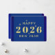 Cartão de férias de Ano Novo Feliz com belas cores azuis e estrelas. Ótimo para aqueles que procuram cartões de férias para enviar enquanto celebram o ano novo. Lindas cores azul e dourado. Texto personalizado na frente e no verso do cartão. Adicione sua mensagem pessoal no verso. Use o modelo para criar seu próprio cartão de férias de Ano Novo Feliz personalizado.