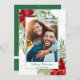 O design do cartão de Natal com folhagens de festa temático apresenta folhagens pintadas à mão em aquarela e lindas poinsettias vermelhas em aquarela. Sua imagem é emoldurada de forma simples e o design é acentuado com manchas douradas em aquarela e bagas de azevinho correspondentes. #Natal #Feriados #CartõesDeNatal