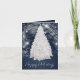 Árvore Branca de Natal Chic e azul com um cartão de feriado de estrelas cintilantes que pode ser personalizado.