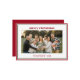 Este simples cartão de festas vermelho e verde, com sua foto favorita no centro, e as palavras "Feliz Natal" em uma fonte moderna e minúscula em vermelho sobre a foto e seu nome de família, e o ano em uma fonte limpa e nítida em BONÉ em vermelho abaixo da foto é perfeito para ser enviado a seus amigos e família. É um design mínimo e clássico que certamente trará sorrisos aos rostos de cada receptor. A parte de trás é vermelha correspondente.