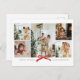 Design de cartão de férias minimalista que destaca uma colagem da foto da sua família. Com uma borda limpa e um laço vermelho festivo, é a maneira perfeita de enviar saudações de temporada para os entes queridos.