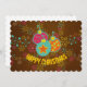 O cartão de convite para Enfeites de natal de feriado alegre, alegre e divertido apresenta três ornamentos bonito com estrelas e pontos em rosa, aqua, laranja e amarelo num fundo marrom com flocos de neve coloridos de aqua, laranja, amarelo e rosa. O texto amarelo claro diz Feliz Natal! Você pode personalizar facilmente a parte traseira desses cartões de convite para cartões de natal com sua própria mensagem de texto.