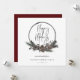 Script de assinatura de Feriados Felizes. Natureza russa: galhos de pinheiro, pinecones e bagas, coroa de corante. Coordenando cor vermelha rústica.
