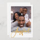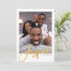 Este é um design de cartão de férias minimalista que usa uma foto simples e elegante com “Alegre” em uma escrita à mão dourada clássica e sofisticada.