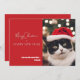 Cartão de Foto de Férias Feliz Natal e Ano Novo. Substitua a foto pela de seu animal de estimação e vire o cartão para personalizar o texto com as Ferramentas de Design. Também disponível como download digital.
