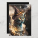 Um divertido cartão artístico de Halloween com um gatinho usando chapéu de bruxa em uma noite estrelada escura.