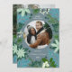 Este belo cartão de Natal de quadro redondo apresenta elementos florais desenhados à mão em vários tons de verde, menta, chato, esbranquiçado. Incluem-se os pinheiros, flores, prigos, folhas, bagas, juntamente com a mão moderna, esfolada em branco, lendo "Feliz Natal". A cor de fundo é um tradicional azul empoeirado clássico de Natal. A parte de trás da carta tem outro lugar para uma foto. Arte original de Caroline Bonne Müller