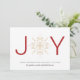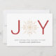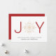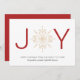 Um simples cartão de feriado com JOY com um floco de neve dourado. Personalize uma saudação e seus nomes familiares. O reverso é coordenado em vermelho.