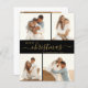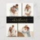O moderno, minimalista, elegante "Feliz Natal", Script 4 de Colagem de Fotos, Feriado de Natal, em preto e ouro. Este cartão festivo, claro e minimalista, quatro (4) fotos da família apresenta uma bonito colagem fotográfica em grade e diz "Feliz Natal"! O script de texto de saudação de "Natal" é escrito em um tipo de fonte de texto de balanço suave e suave. Na parte de trás, uma foto e sua mensagem. Bonito cartão de boas-vindas para sua família e amigos na temporada de festas de inverno.