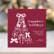 Cartão de Férias de Natal do Arco Moderno Burgundy, um cartão de feriado único apresenta arcos desenhados à mão organizados numa árvore de Natal reluzente, destacada contra um fundo burguês, e "Feriados mais Felizes" como a mensagem principal. O design moderno combina encanto festivo com um design de arco na moda para um cartão de destaque. Personalize com sua mensagem e seu nome ou nomes de família. Escolha impressões e/ou um cartão de Natal digital. Arte original e design por Designs do Ana Garza/Kardz Studio. Sinta-se à vontade para me contactar através do Bate-papo Zazzle se tiver alguma pergunta.