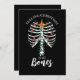 Um cartão de férias engraçado com o sentimento de Natal nos meus ossos. Há uma jaula de esqueleto e coluna decorada com luzes, ornamentos e uma estrela. Adicione sua mensagem de feriado e seu(s) nome(s) no verso. Ver pontos coordenadores no nosso compro.
