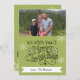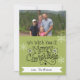 Texto preto que diz "Desejamos a Você um Feliz Natal" na frente e "e um Feliz ano novo!" no verso com um fundo verde pontilhado, flocos de neve brancos e cervejas de silhueta, e áreas onde você pode adicionar seu nome de família e foto em um cartão de cartões de natal de Natal que você certamente quer enviar para a família e amigos!