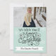 Texto preto que diz "Desejamos a Você um Feliz Natal" na frente e "e um Feliz ano novo!" nas costas com um fundo aqua macio, flocos de neve brancos e cervejeiros de silhueta, e áreas onde você pode adicionar seu nome de família e foto em um cartão de cartões de natal de Natal que você certamente quer enviar para a família e amigos!