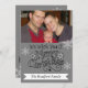 Texto preto que diz "Desejamos a Você um Feliz Natal" na frente e "e um Feliz ano novo!" nas costas com um fundo de cinza, flocos de neve brancos e veado de silhueta, e áreas onde você pode adicionar seu nome de família e foto em um cartão de cartões de natal de Natal que você certamente quer enviar para a família e os amigos!