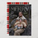 Elegante 1 foto Feliz Cartão de Natal com nome de assinatura de script. Design de tipografia moderna. Personalize com foto vertical de feriado, nome e ano.