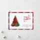 Apresenta uma bela árvore decorada com folha vermelha falso Feliz Natal num roteiro festivo enquadrado num padrão de xadrez vermelha e negra de búfalo. Personalize facilmente a mensagem e o nome da sua escolha.