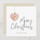 Um cartão de Natal belamente minimalista, com uma delicada ilustração aquosa de um Enfeites de natal em forma de coração cor-de-rosa. O simples design, aliado à elegante mensagem "Feliz Natal" e ao nome de família personalizável, acrescenta um toque pessoal e refinado aos seus cartões de natal. Perfeito por enviar desejos calorosos a amigos e familiares, esta carta traz um encanto agradável e doce para sua correspondência festiva.