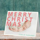 Celebre seu primeiro Natal com um toque na moda e moderno. Este cartão com fotos de feriado minimalista apresenta um feliz Feliz Natal em letras transparentes de sans-serif vermelhas colocadas sobre sua foto favorita de recém-nascido ou de família. Uma saudação de família personalizada em elegante texto verde transparente ancora a parte inferior, fazer este cartão único e sincero. Projetada para imagens leves, a camada transparente permite que os rostos dos seus entes queridos brilhem enquanto mantém uma estética limpa e contemporânea. Perfeito para novos pais ou famílias que querem partilhar alegria de férias com uma reviravolta moderna.