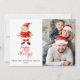 Este cartão de convite de festas de Natal apresenta uma cláusula Santa, um roteiro vermelho de pintinho "Felizes Feriados", uma bela foto da família e um fundo de tartã de Natal vermelho. personalize com seu nome de família e detalhes da festa.